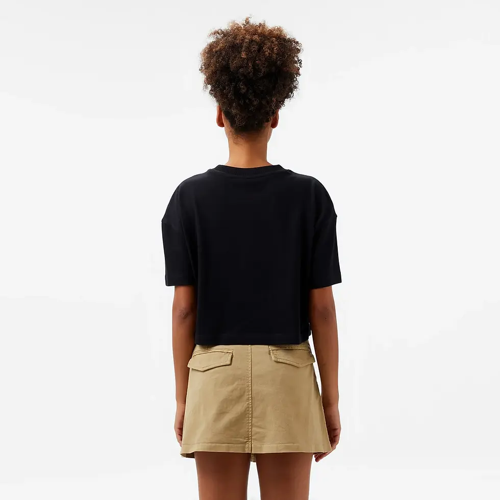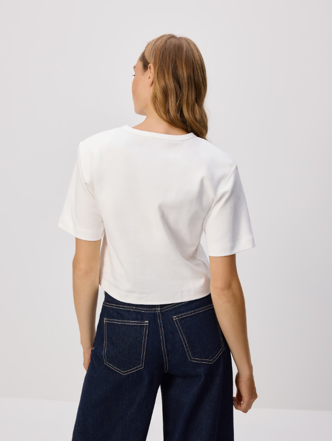 Pamuk ağırlıklı kumaştan yapılmış, kısa kesimli tişört.